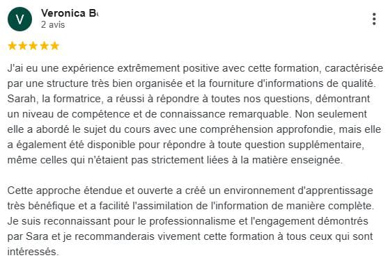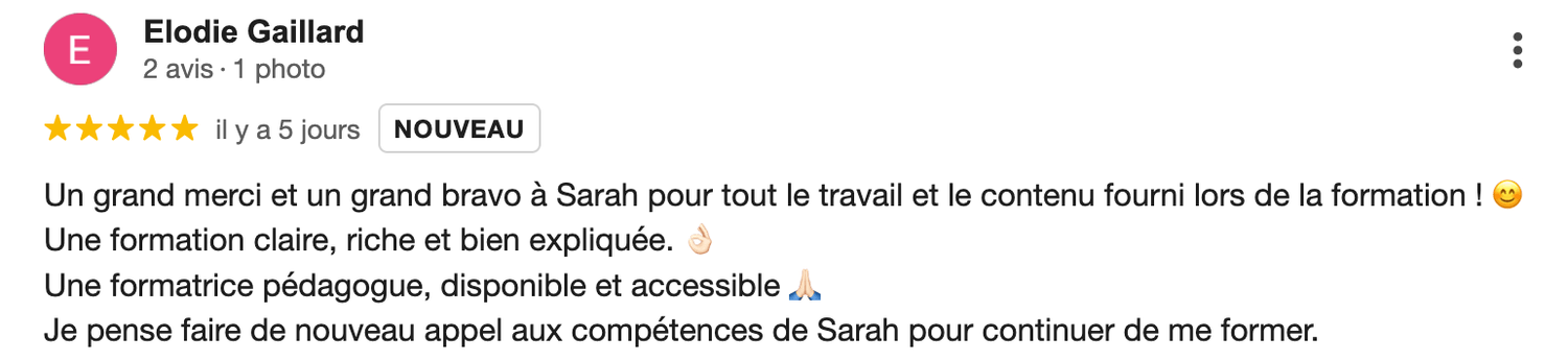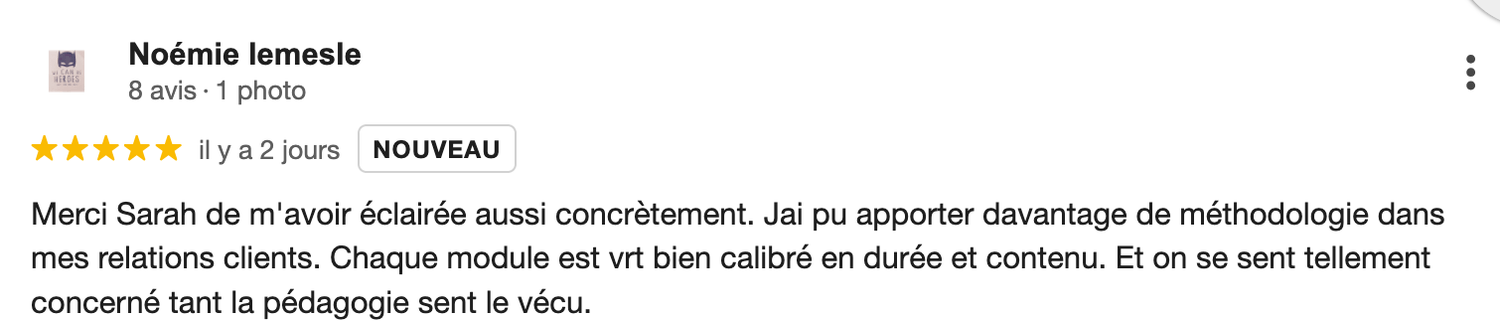 👉 Que ce soit en live à la fin des modules pour par mail par la suite tu as la possibilité de me contacter pour avoir un avis extérieur. Chaque personne qui entre dans mes formations sait qu'elle peut ensuite me contacter pour des conseils.