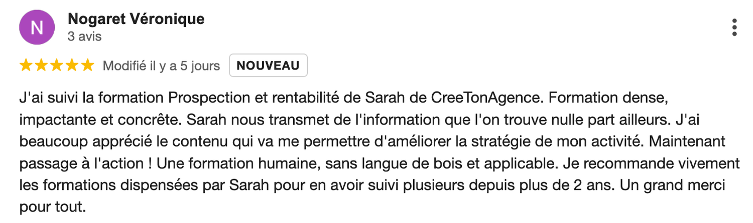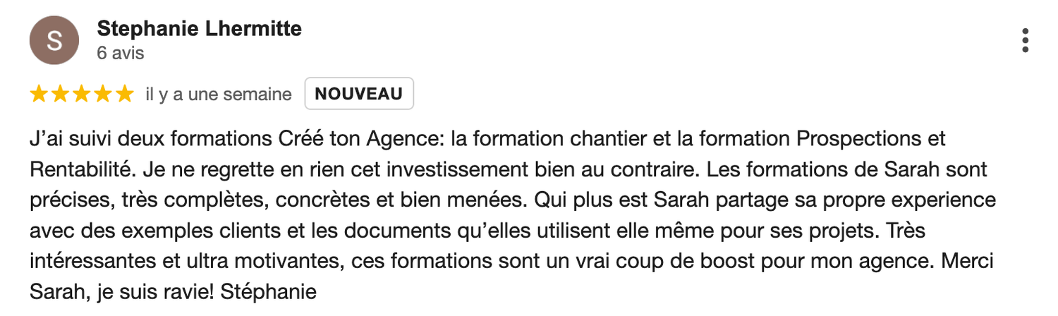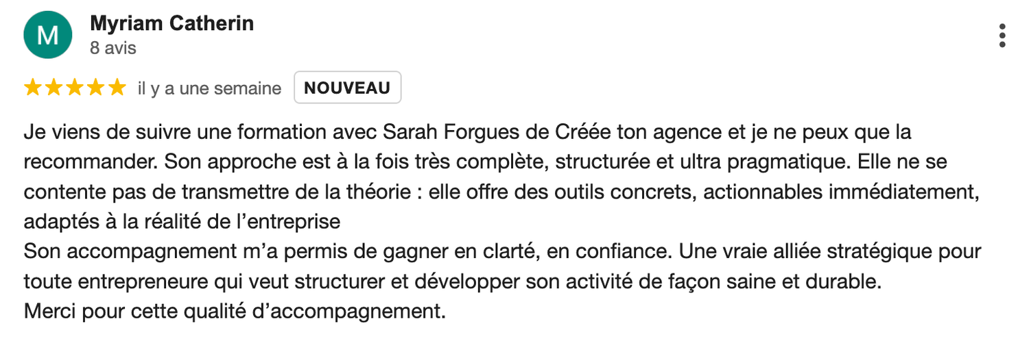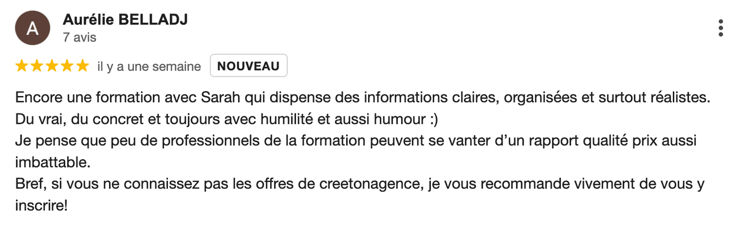 👉 Cette formation ne se contente pas de te donner de la théorie. Tu repars avec des outils concrets et des stratégies applicables immédiatement à ton entreprise. Chaque module est conçu pour être mis en pratique dès que tu as terminé. C'est le pouvoir des formations de Crée Ton Agence, une fois que tu as récupéré les slides de la formation tu peux immédiatement t'en servir.